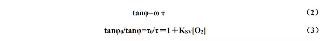 上式中,I0和 τ0 分別為無氧時的熒光強度和熒光壽命,I和τ為有氧時的熒光強度和熒光壽命,KSV為猝滅劑的猝滅常數,[O2]是溶解氧濃度。由(1)式可知,通過測量熒光強度或者熒光壽命,就可以計算出溶解氧的濃度。雖然利用物質的熒光強度來計算氧含量比較簡單,但是由于物質的熒光強度容易受到外界因素如光、溫度等的影響,從而導致測量誤差。而利用熒光壽命測量對比熒光強度的測量雖然結構上會較為復雜,但熒光壽命是熒光物質的本征參量,對熒光壽命的測量不會受太多外界因素變化的影響,所以具有很好的抗干擾能力。